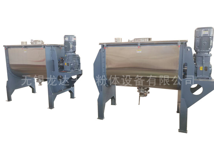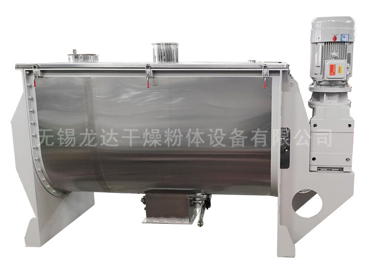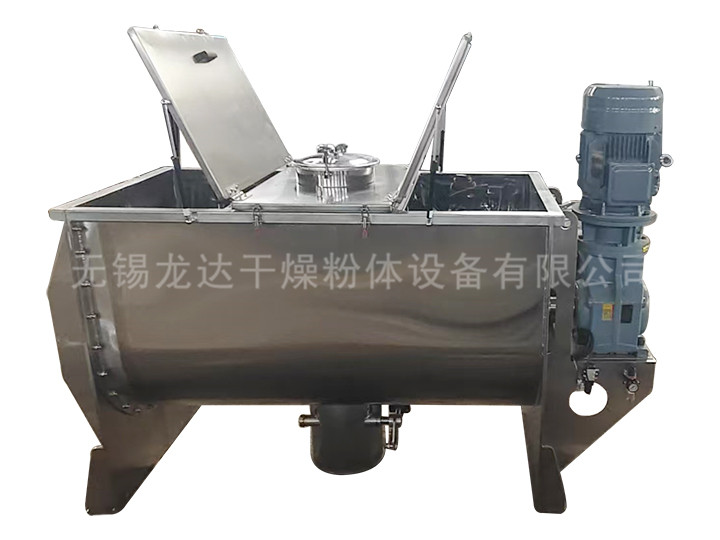 槳葉螺帶混合機由U或圓形容器、螺帶攪拌葉片和傳動部件組成;螺帶狀葉片一般做成雙層或三層,外層螺帶將物料從兩側(cè)向中央?yún)R集,內(nèi)層螺帶將物料從中央向兩側(cè)輸送,形成對流混合。螺帶混合機對于粘性或有凝聚性的粉粒體的混合以及粉粒體中添加液體及糊狀物料的混合有良好的效果,筒蓋可做成全開式門,以便于對設備進行清洗更換產(chǎn)品。
